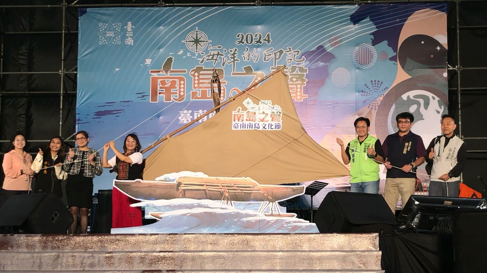 將近2.5公尺高船帆拉滿拉高,象徵活動正式啟航。2024南島文化節選在台灣歷史博物館盛大舉行。