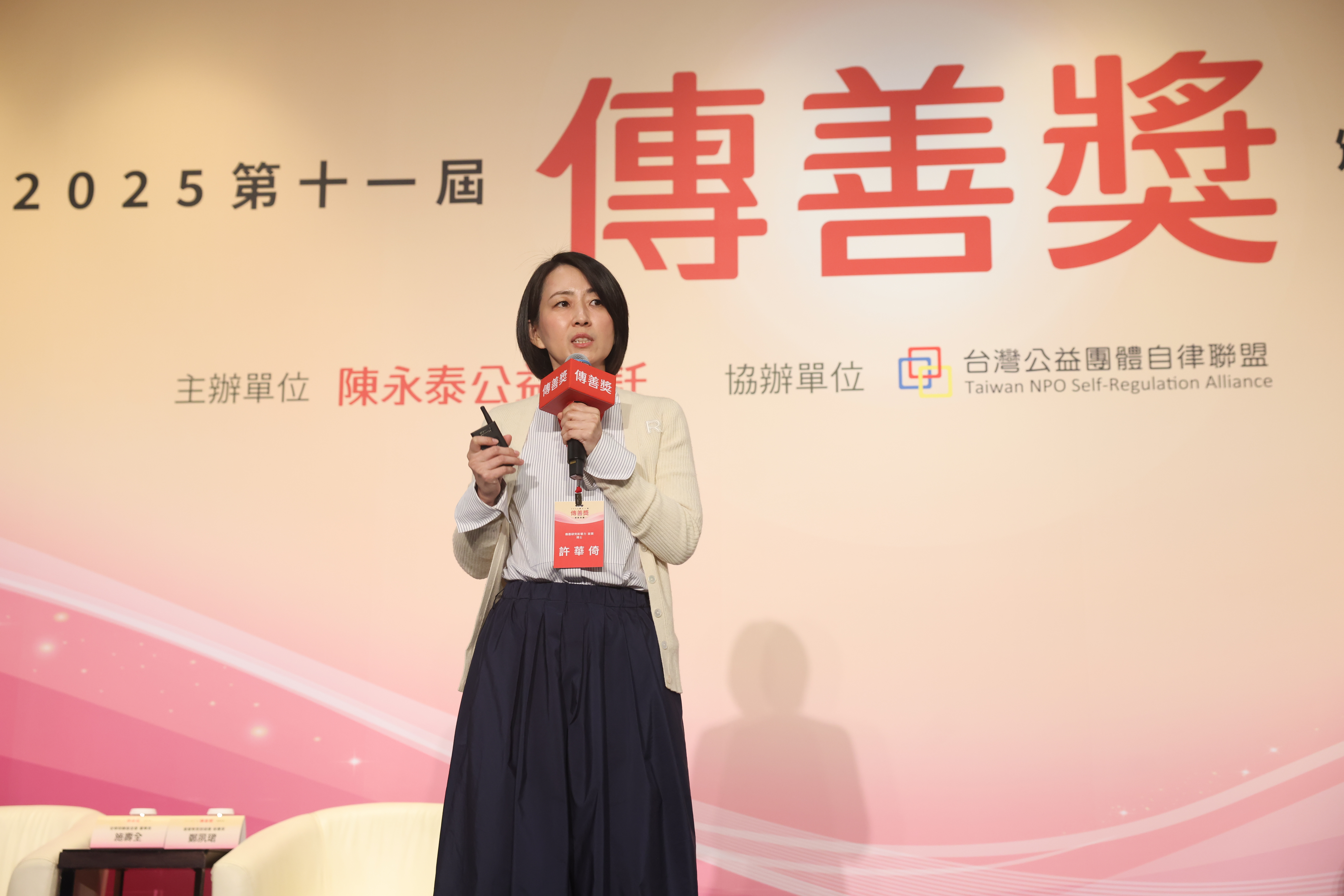 協辦單位台灣公益團體自律聯盟陳俋潓理事長則指出,傳善獎除了藉由不同專業領域的專家擔任評審,導入多元觀點進行方案審查,得獎後更搭配為期三年的專業顧問團隊,陪伴機構走過創新的每道難關。