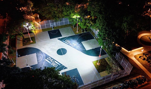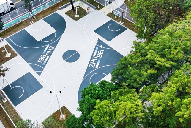 竹北市長鄭朝方表示,此次改造工程包括地坪重新整理、球框全面更新,並且將原生綠樹融入球場,一邊運動一邊呼吸芬多精,感覺就像在森林裡面打球,他接著說明,球場以四個半場交織而成,從空中俯瞰宛如一個巨大的十字,因此賦予「十字星籃球場」之名。除視覺及設施升級外,也同步增設四向投光燈,提升夜間照明品質,並在樹蔭下打造舒適的休憩座椅區,有幾個座位角度特別有禪意美學,也提供球友與等待家長更善美的運動與觀賽環境。