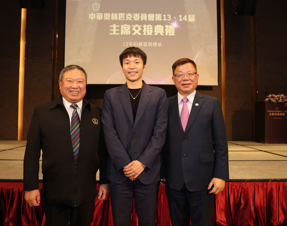 中華奧林匹克委員會第13、14屆主席交接典禮,今(30日)在台北新板希爾頓酒店隆重舉行。帶領中華奧會走過十二年任務與榮耀的主席林鴻道,正式卸下重任,在榮譽主席蔡辰威擔任監交下,將象徵責任與使命的印信,交付給新任主席蔡家福。此次交接不僅是職務更替,更象徵臺灣體育傳承重要時刻。